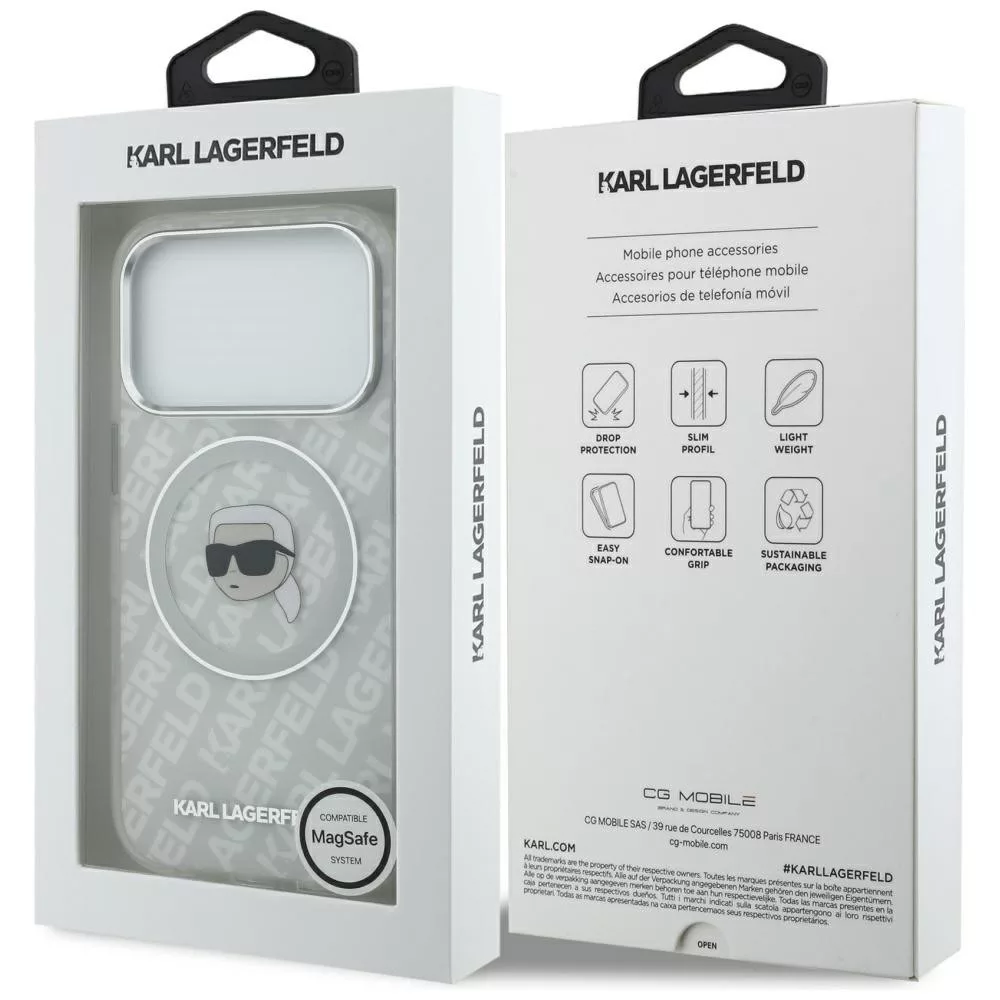 Karl Lagerfeld IML Karl Head Logo MagSafe iPhone 17 Pro tok, szürke